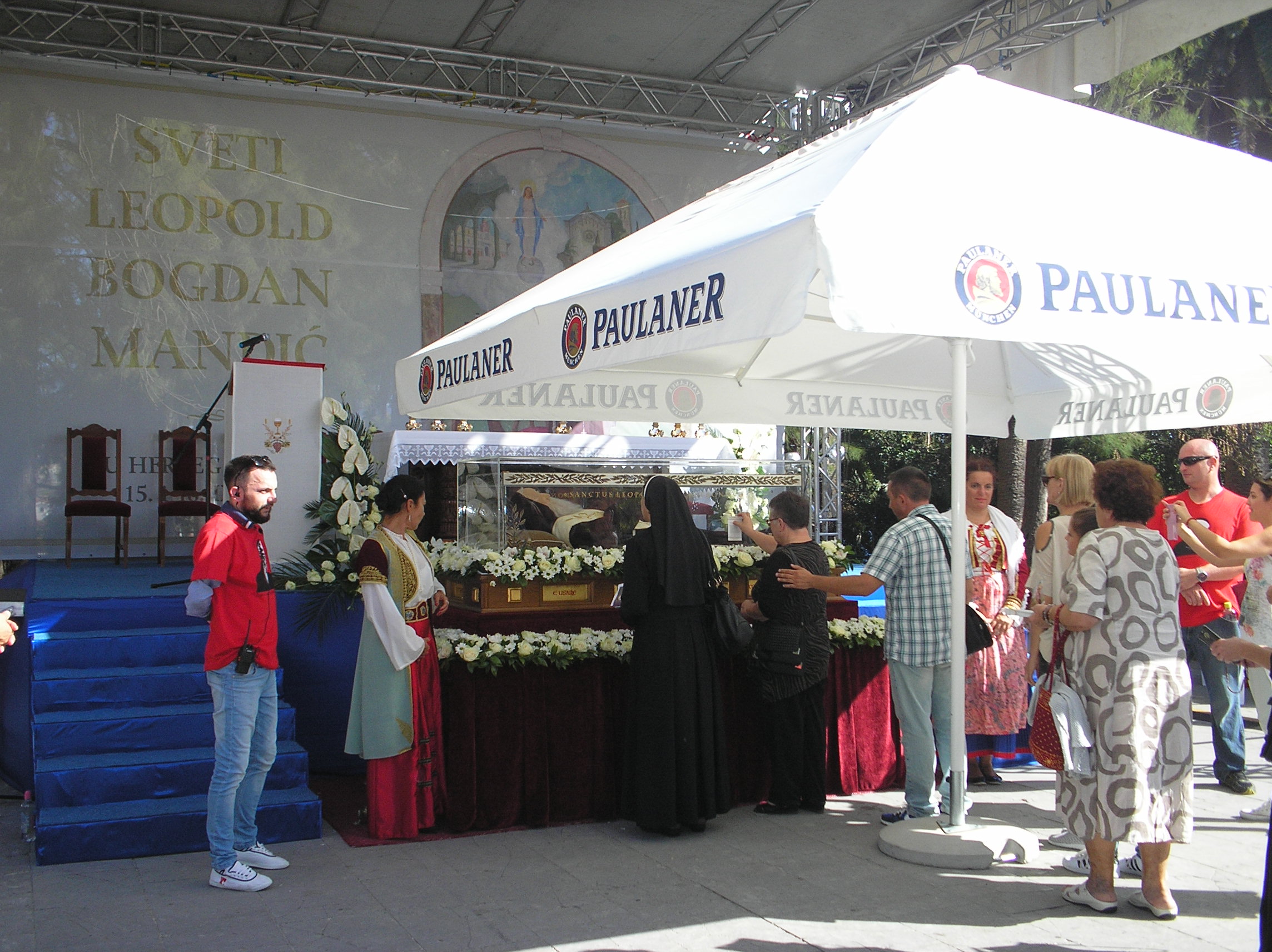 Zbog skromnih dimenzija starogradske crkve Sv. Leopolda, podignute po dolasku fratara kapucina 1688. i preimenovane 1976*. g, te zbog brojnih hodočasnika koji su napučili Herceg Novi – liturgija dočeka upriličena je u petak, 15. IX 2017, u centralnom parku „Boka“.